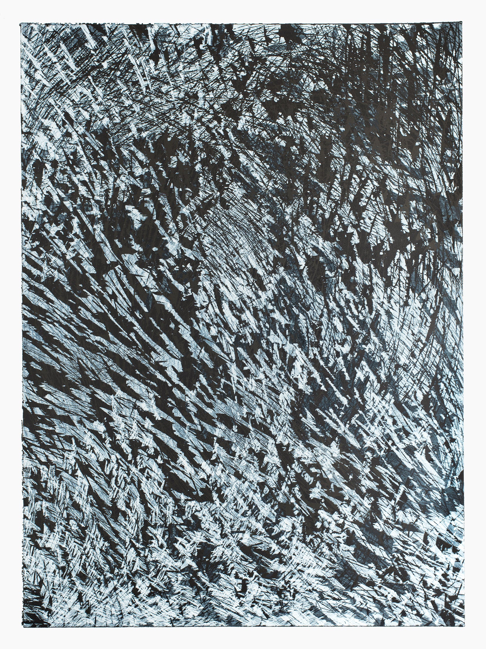 Holzschnitt auf Papier von Hanna Sass. Die Grafik misst 50 x 70 cm und stammt aus dem Jahr 2020. "8.1.20" ist bereits verkauft.
