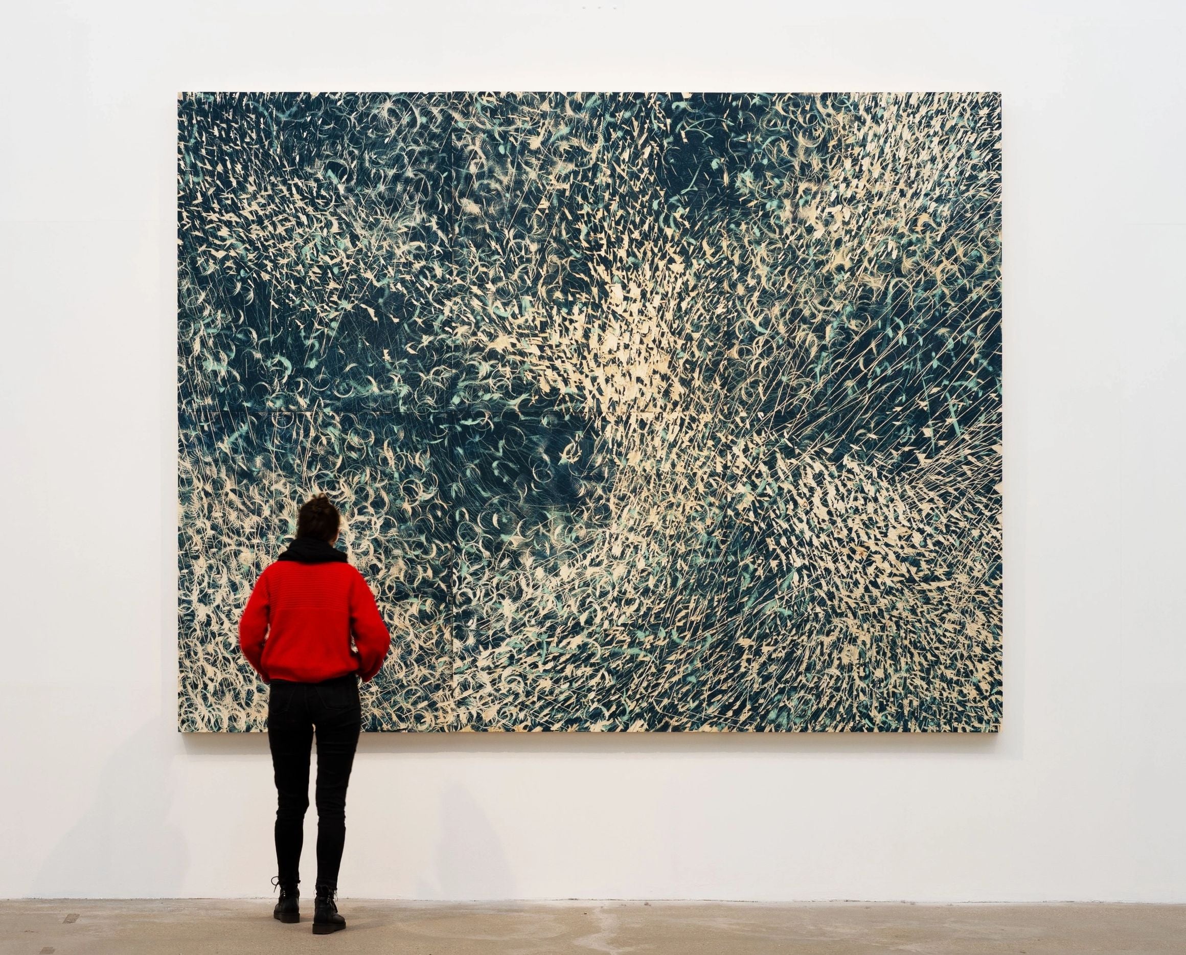 Holzschnitt auf Papier von Hanna Sass. Die Grafik misst 120 x 160 cm und stammt aus dem Jahr 2018.